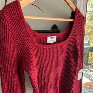 Chic ribbed sweater with long sleeves. Perfect for layering. Square neckline