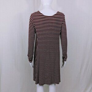 Old Navy Burgundy & White Long Sleeve Striped Stretchy Knee Length Dress Size S