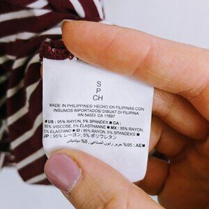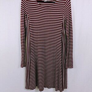 Old Navy Burgundy & White Long Sleeve Striped Stretchy Knee Length Dress Size S.
