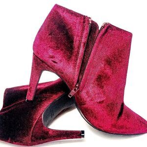 Lush wine red velvet ankle booties with sharp spike heels by Old Navy.