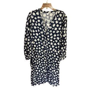 Old Navy Button Down Navy/White Daisy Dress Sz XXL NWT Elastic Waist. 1/2-3/4 Sleeve