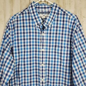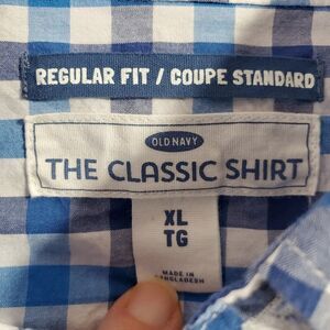 Old Navy Striped Long Sleeve Button Down Shirt Navy Blue White Check.