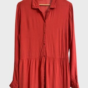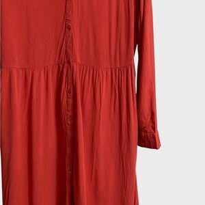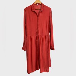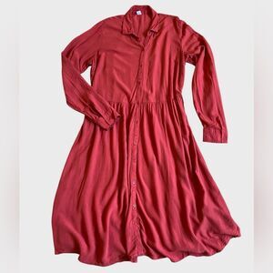 Old Navy Button Front Midi Shirt Dress Size L Crepe Seamed Waist Long Sleeves