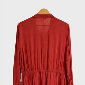 Old Navy Button Front Midi Shirt Dress Size L Crepe Seamed Waist Long Sleeves Beach Vacation Resortwear