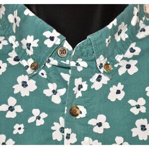 Old Navy Button Shirt Men’s L Green Floral Built In Flex Slim Fit Cotton Beach