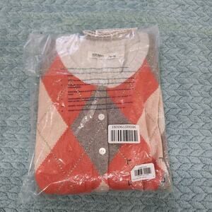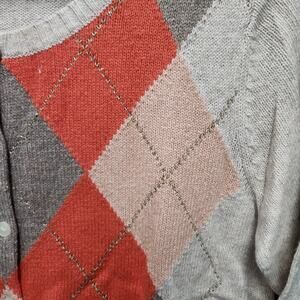 Old Navy Button Up Argyle Sweater Oatmeal Retro Grandmacore Cardigan Medium