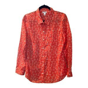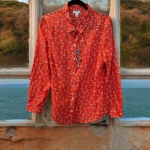 Old Navy Button-Up Red Anchor Print Collared Long Sleeves necklace included light weight