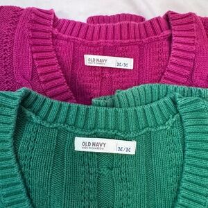 Old Navy Cable Knit V-Neck Sweaters – Size M (Green & Magenta)