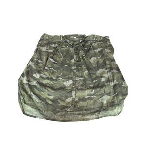 Old Navy Camo Blouse M Womens Button-Down Short Sleeve Shirt Cotton Rayon Blend