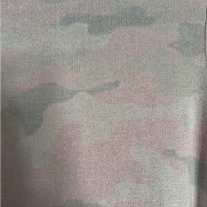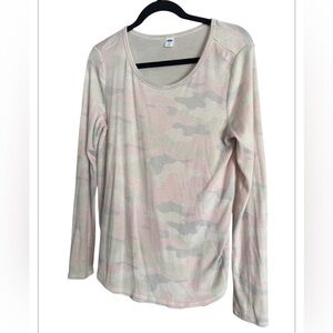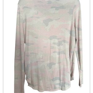 Pink, Gray & white muted camo top. Curved hem. Very soft. Size Med P2P 18” Length 26” 76% Rayon 20% poly 4% spandex