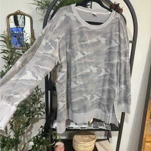 Stylish crewneck sweater with a camouflage design. Perfect for casual outings.