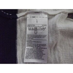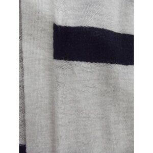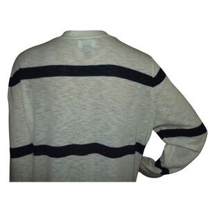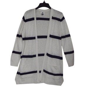 Old Navy Cardigan Sweater Womens Size Large Cream Navy Blue Striped pockets Midi