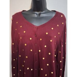 Old Navy Cardigan XL Golden Embroidered Polka-Dots Button Down Casual Preppy