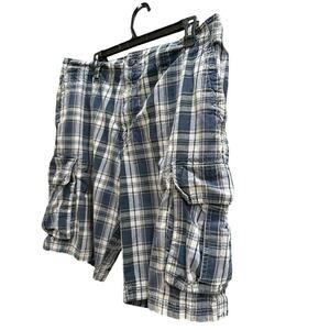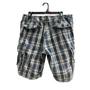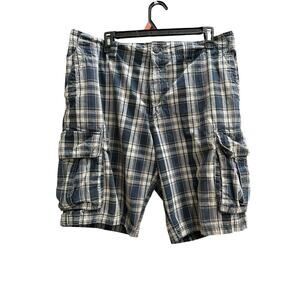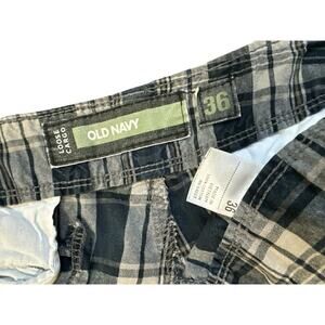 Old Navy Cargo Shorts Men 36 Green Plaid Flat Front