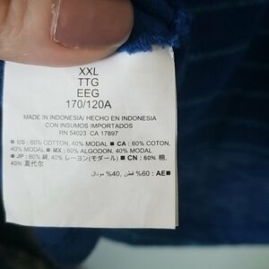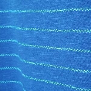 Blue with a zig zag stripe pattern. Lightweight fabric has a scoop back. Excellent condition. Great breezy top for summer. Layer it with a sweater in other seasons. Lounge, beach, summer, minimalist, cotton modal blend