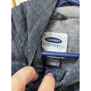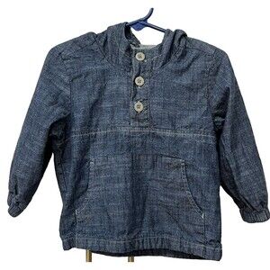 Old Navy Chambray Blue Denim Cotton Hood Pullover Jacket Coat Boys Sz 18-24 Mths