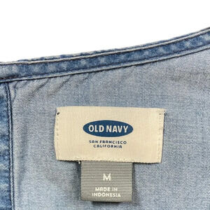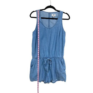 Old Navy Chambray Blue Denim Romper, Size Medium, Drawstring Waist, Sleeveless