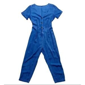 Old Navy Chambray Denim button up Jumpsuit short sleeved size large