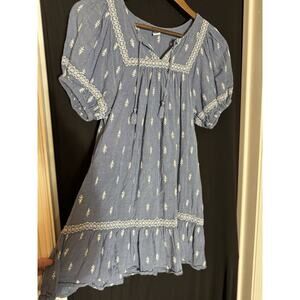 Old Navy Chambray Embroidered Boho Flutter Sleeve Dress Size XS Petite