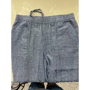 Old Navy Chambray Tapered Pull On Pants Women L Blue Linen Blend Elastic Waist
