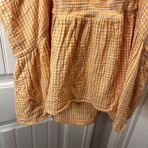 Old Navy Checker Tie-Shoulder Blouse Size XXL Gold Smocked Gingham Cami Swing