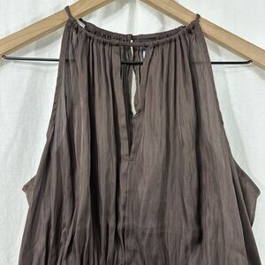 Old Navy Chocolate Brown Satin Sleeveless Elastic Waist Top Womens Size M Fall