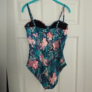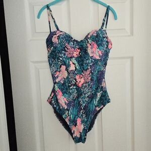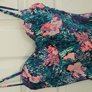 Old Navy Cinch Front Coral Printed One Piece Blue & Pink