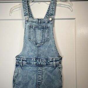 Classic blue denim overalls by Old Navy. Ideal for everyday style. These have a straight leg…size 2 with a side zipper. They are stretchy, so they give a little! Super cute! They do have a couple of spots in the front…please see pics for reference. The spots are not super noticeable. Other than that, they are in good preowned condition!