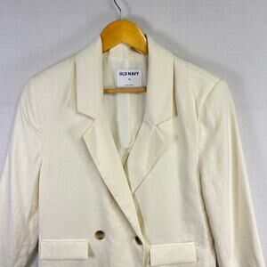 Old Navy Classic Cream White Womans Linen Blend Blazer Jacket Size XS Career