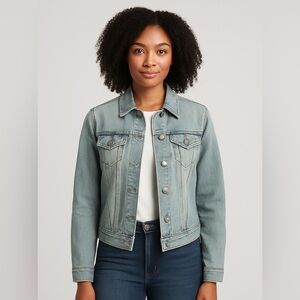 Old Navy jean jacket, women’s medium denim jacket, 100% cotton jacket, Old Navy denim coat, casual layering jacket, blue jean jacket, women’s cotton jacket, fall denim jacket, Old Navy medium outerwear, classic jean jacket women
