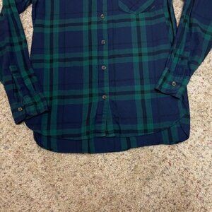 Old Navy Classic Green/Navy Plaid Lightweight Flannel Button Down Shirt - XS