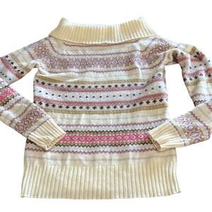 Old Navy Colorful Embellished Lambs’ Wool Sweater Woman Size Large Off Shoulder
