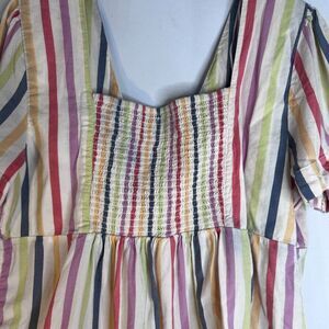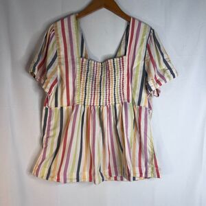 Old Navy Colorful Rainbow Striped Vneck Smocked Back Empire Top Size XL