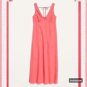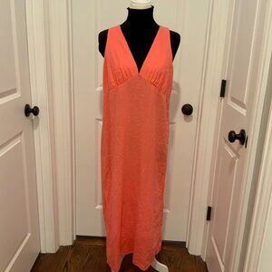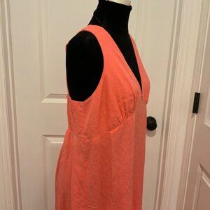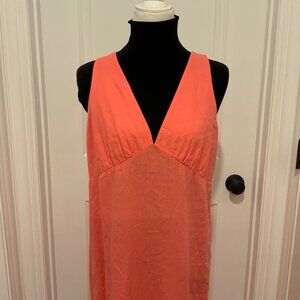 Old Navy Coral Pink V Neck Smocked Back Linen Blend Dress Large