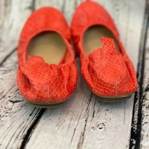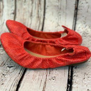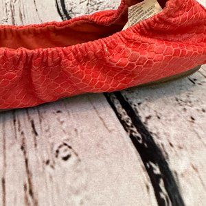 Gently worn ballet flats from Old Navy. Coral colored with snakeskin print. Some normal wear flaws as displayed in photos.