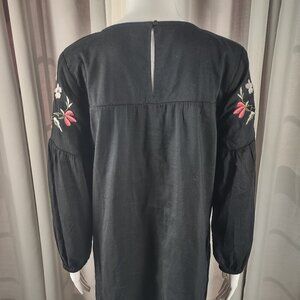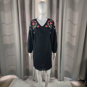 Old Navy Cotton Blend Tunic Dress Black Embroidered V-Neck Lined Size Medium