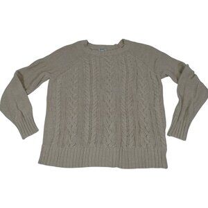 Old Navy Cozy Crewneck Cable Knit Sweater Women Size XL Soy Latte Beige Long Slv