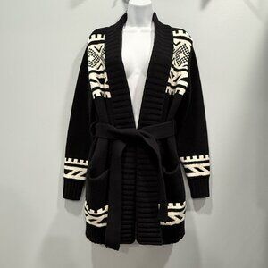 Old Navy Cozy Fair Isle Aztec Tie Belt Cardigan Sweater Jacket B & W Womens M