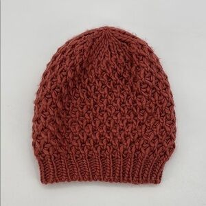 Stay warm and stylish with this cozy knit beanie in a beautiful rust color. Perfect for any cold weather outfit.