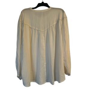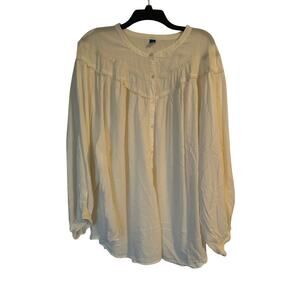 Elegant cream blouse with button front. Features delicate detailing on the yoke. Long sleeves for a classic look.