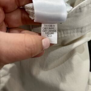 Trendy Old Navy cream cargo barrel pants featuring drawstring hems, utility pockets, and a relaxed fit. Perfect blend of casual comfort and modern streetwear style.