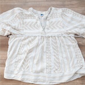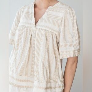 Chic cream blouse with geometric patterns. Lightweight and stylish. Ideal for casual wear.