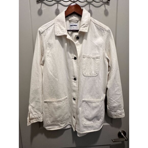 Old Navy Cream Jacket Women's S/M Denim Workwear Shacket Barn Chore Workwear