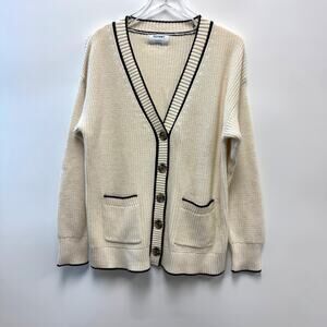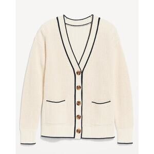 Old Navy Cream Navy Relaxed Academia Cardigan Sweater Sz Large L