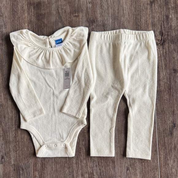 Old Navy Cream Ribbed Ruffle Neck Baby Matching Set