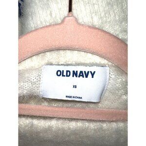 Old Navy Cream Textured Fuzzy Knit Crewneck Sweater XS Womens