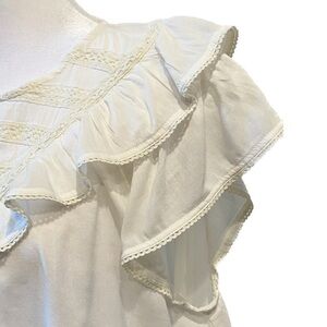 Old Navy Cream V-neck Ruffled Tank Top with Lace Details Size Large