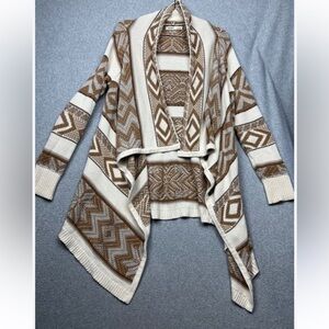 Old Navy Cream and Caramel Open Front Waterfall Cardigan,Aztec Bohemian Print, S