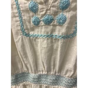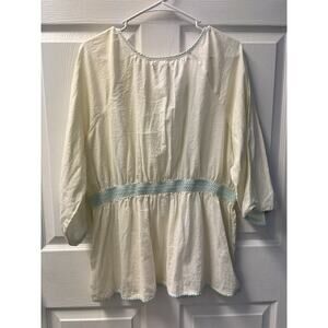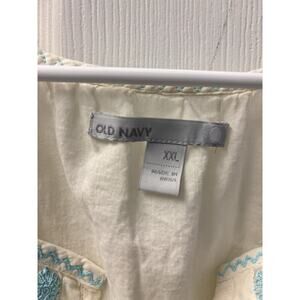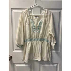 Old Navy Cream and Turquoise Cotton Cottage Peasant Top XXL
