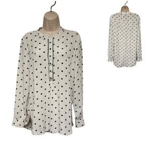 Old Navy Crew-Neck Polka-Dots Long Sleeve Black/White Blouse Size Medium